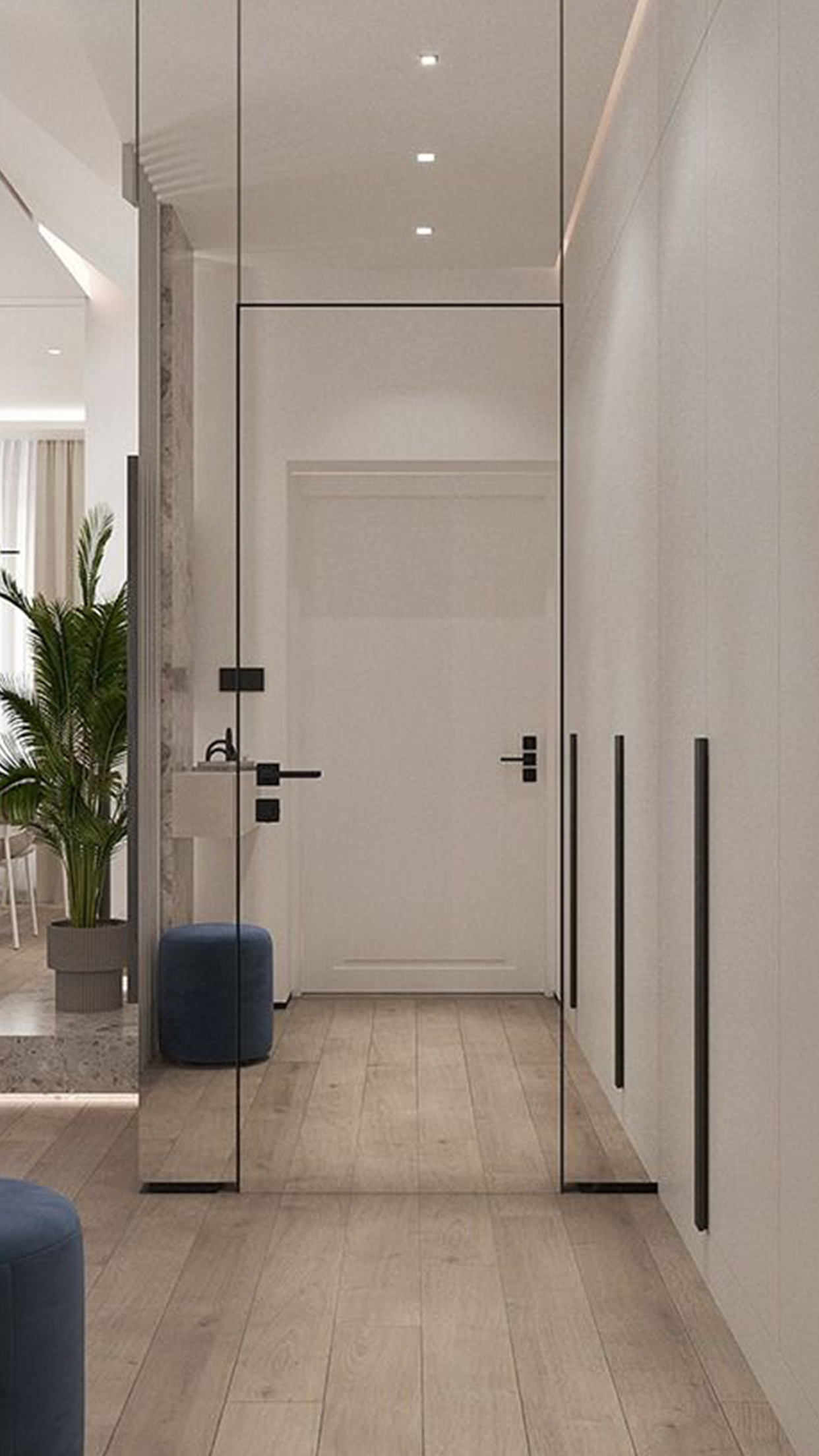 درب فریم لس اینه ای شیشه ای با روح مینیمال