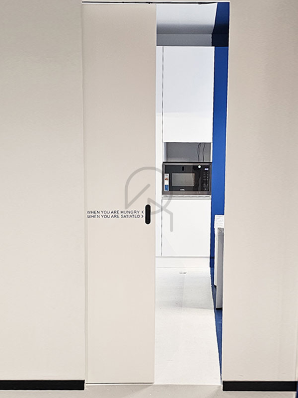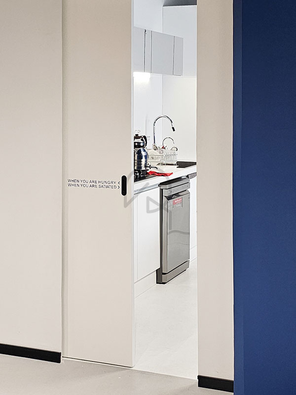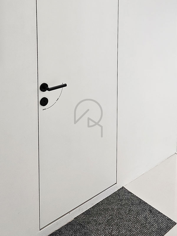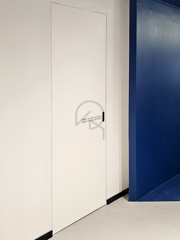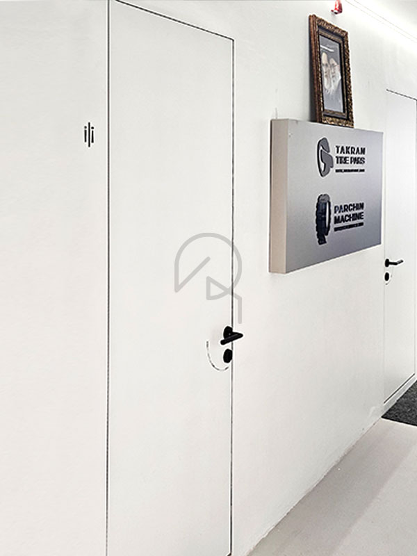 از این جهت تیم رادنوسازه از یراق ژاپنی استفاده کرده و نتیجهی کار ایجاد یک درب ریلی فریم لس استاندارد شد که به هنگام باز شدن پشت دیوار و بصورت مخفی قرار میگیرند و به هنگام بسته شدن کاملا با دیوار روبرو همباد میشوند.